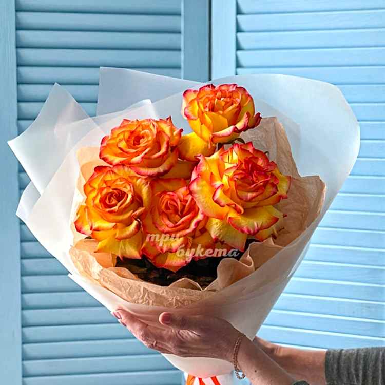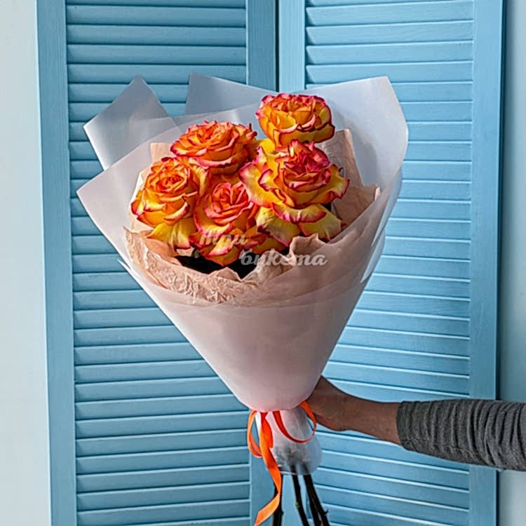 • Оранжевые эквадорские розы, 5 шт.